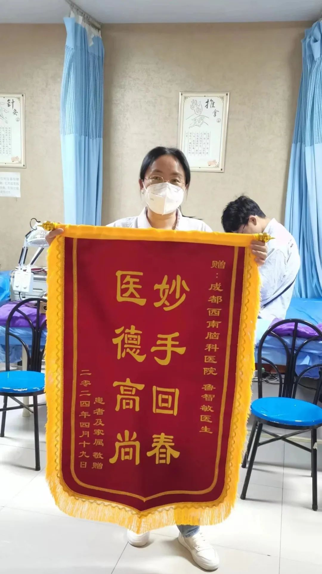 今年75岁的熊大爷因帕金森入院,渐进性肢体抖动,僵硬伴运动迟缓2+年,经康复治疗明显好转,为表感谢,为康复科鲁智敏医生送来锦旗。