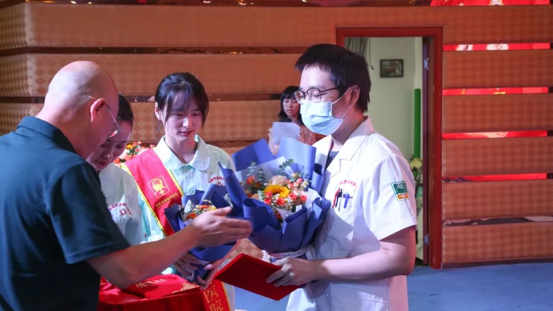 医生职业融友爱、责任和道义于一身,虽然沉重,却深感光荣而又无怨无悔!铮铮的誓言是一种坚定的信念,落实到临床工作,涌现出了大批脑科好医生。在接下来的颁奖仪式里,我院邢雯梅院长和党支部王桂芝主任、医务科宋光安主任、院办袁宾主任一起,为我们优秀的医务工作者颁发了荣誉证书。